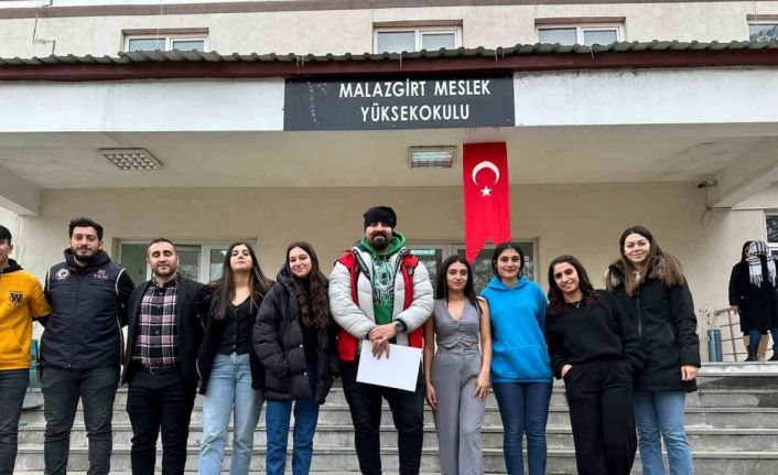 Muş Emniyet Müdürlüğü ekipleri tarafından "El Ele Güvenli Geleceğe" projesi kapsamında Malazgirt Meslek Yüksekokulunda açtıkları stantta 257 öğrenciyi bilgilendirdi. Öğrencilere defter, tükenmez kalem, broşür, bez çanta, uçlu kalem, silgi seti ve grafik resim tekniği ile hazırlanan kişiye özel isim yazılı kaligrafi kâğıtları hediye edildi.