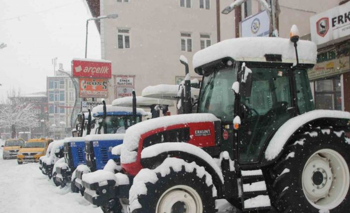 Belediye ekipleri ilçe merkezine topladıkları kar kütlelerini ise araçlarla ilçe dışına çıkarıyor.