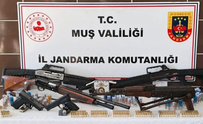 Muş İl Jandarma Komutanlığı ekiplerince Malazgirt ilçesinde yürütülen arama faaliyetlerinde çok sayıda ruhsatsız silah ve mühimmat ele geçirildi, 6 şüpheli gözaltına alındı.