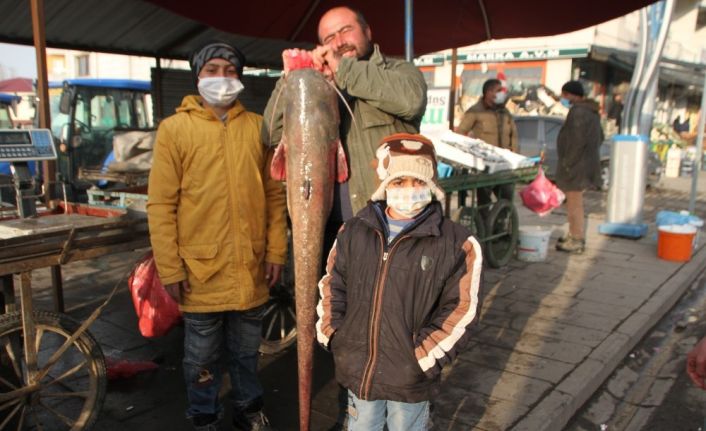 Muş’un Malazgirt ilçesinde Murat Nehri’nde oltasıyla balık avlayan Yusuf Ayfer, 1.5 metre uzunluğunda, 30 kilogram ağırlığında yayın balığı yakaladı.