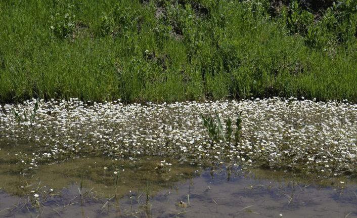 Muş’ta baharın gelişiyle birlikte boy gösteren çiçekler ovada renk cümbüşü oluşturdu.