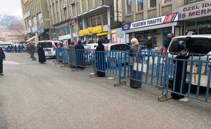 Muş Emniyet Müdürlüğü ekipleri, korona virüs tedbirleri kapsamında vatandaşların sosyal mesafe kuralına uymaları amacıyla yerlere sprey boyayla işaretleme yaptı.