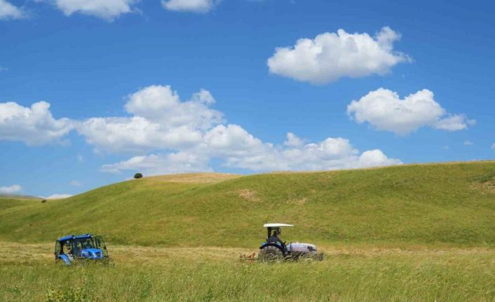Tarım ve hayvancılığın önemli geçim kaynakları arasında yer aldığı kentte çiftçiler, yaz sıcağına rağmen hayvanların kışlık yem ihtiyacını karşılamak için yoğun çaba sarf ediyor. Günün ilk ışıklarıyla tarlaların yolunu tutan üreticiler, traktör yardımıyla biçtikleri otları daha sonra patoz yardımı ile saman haline getirerek kışa hazırlıyor.