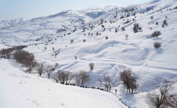 Muş’ta doğa tutkunları ve profesyonel dağcılardan oluşan Gerok Grubu, zorlu hava şartlarına rağmen Karlı Dere’de yaptıkları doğa yürüyüşü ile şehrin doğal güzelliklerini bir kez daha gözler önüne serdi. Muş’ta sabahın erken saatlerinde başlayan yürüyüş yaklaşık 10 kilometre sürdü.