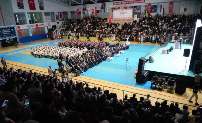 Muş İl Müftülüğüne bağlı Kur’an kurslarında eğitimlerini tamamlayan 300 öğrenci, düzenlenen görkemli törenle hafızlık icazetlerini aldı. Yeni Spor Salonu’nda gerçekleşen programa 3 binden fazla vatandaş katıldı. Tören, İstiklal Marşı’nın okunması ve Kur’an-ı Kerim tilavetiyle başladı. Kur’an-ı Kerim’i güzel okuma dalında dünya ikincisi olan Hamit Avşar Karaca ile Türkiye finalisti Ali Kızılkaya’nın tilavetleri, dinleyicilere duygu dolu anlar yaşattı.