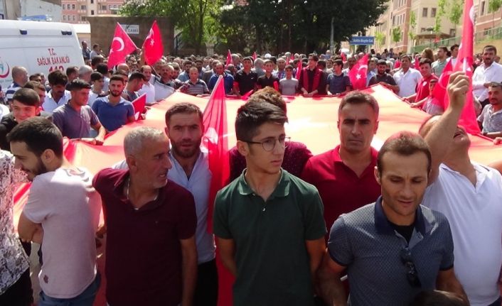 Diyarbakır’ın Kulp ilçesinde sivillerin bulunduğu aracın geçişi sırasında PKK’lı teröristlerce yola yerleştirilen patlayıcının infilak etmesi sonucu şehit düşen 7 kişinin ardından Muş’ta ‘teröre lanet’ yürüyüşü gerçekleştirildi. Merkez Ulu Camii’nde kılınan öğle namazını müteakiben cami önünde toplanan binlerce kişi, Muş Belediyesi önüne kadar yürüyüş yaparak terörü lanetledi. Belediye Meydanı’nda “kahrolsun PKK” sloganı atan binlerce kişi, şehitler için de dualar etti.