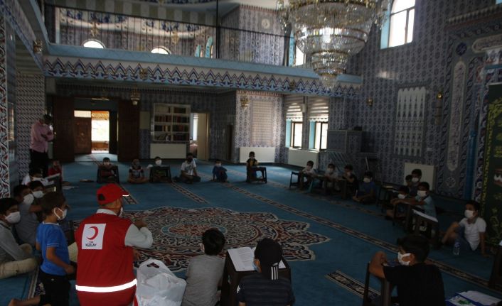 Varto Kızılay Şubesi Başkanlığı tarafından Hacı Kaya Özer Camiinde yaz Kur’an kurslarına devam eden yaklaşık 45 öğrenciye giyim yardımı yapıldı. Öğrencilere Kızılay’ı anlatan Varto Şubesi Başkanı Hamza Sezgin Yonat, “Kızılay olarak öğrencilerimizin yüzlerini güldürmek bizleri de mutlu ediyor. Biliyorsunuz artık camilerimiz açıldı. Aşılarımız devam ediyor. Öğrencilerimize destek olma amacıyla Kızılay’ımızla birlikte ilçemizde bulunan camilerimizde yaz Kur’an kurslarına devam eden kursiyerlerimiz vardı. Çok şükür camilerimiz çocuklarla şenlendi. Kurban Bayramı öncesi kursa devam eden 45 öğrencimize giyim yardımında bulunduk. Bu vesile ile öğrencilerimizi tebrik ediyorum” dedi.