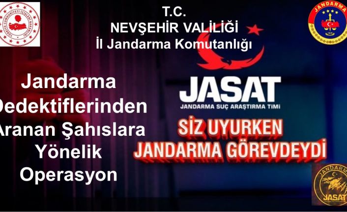 Nevşehir İl Jandarma Komutanlığı Jandarma Dedektifleri (JASAT) ve Merkez İlçe Jandarma komutanlığı ekiplerince emniyet, asayiş ve kamu düzeninin sağlanması çerçevesinde aranan şahısların yakalanması amacıyla çalışma başlatıldı. Yapılan çalışma sonucunda hakkında birden fazla kişi tarafından gece vakti birlikte yağma suçundan 11 yıl 8 ay kesinleşmiş hapis cezası ile yakalama kararı bulunan M.G., yakalanarak göz altına alındı.