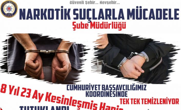 Nevşehir’de aranan şahıslara yönelik yapılan çalışmalarda 9 yıl 11 ay kesinleşmiş hapis cezası bulunan şahıs yakalandı.