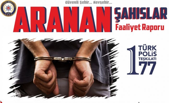 Edinilen bilgiye göre Nevşehir Adli Makamlarınca ’Kasten Öldürme’ suçundan aranan ve hakkında 9 yıl 2 ay hapis cezası bulunan F.S., ’Ailenin Korunması Tedbirinin İhlali’ suçundan aranan ve hakkında 10 gün hapis cezası bulunan H.K., ’Hırsızlık’ suçundan aranan M.B., ’Silahla Tehdit’ suçundan aranan ve hakkında 5 ay hapis cezası bulunan Ö.G., ’Hırsızlık’ suçundan aranan ve hakkında 3 yıl 9 ay hapis cezası bulunan M.Ç., ’Bilişim Sistemleri Banka veya Kredi Kurumlarının Araç Olarak Kullanılması Suretiyle Dolandırıcılık’ suçundan aranan B.U., ’Basit Yaralama’ suçundan aranan B.G., ’Kamu Kurum ve Kuruluşlarındaki Eşya Hakkında Hırsızlık’ suçundan aranan A.B., ’Kullanmak İçin Uyuşturucu veya Uyarıcı Madde Satın Almak Kabul Etmek veya Bulundurmak’ suçundan aranan F.H. yakalanarak gözaltına alındı.