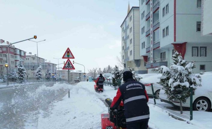 Nevşehir Belediyesi, kentte etkili olan kar yağışı nedeniyle ana arterler ile bulvar ve caddelerdeki yollar başta olmak üzere yayaların kullandığı kaldırımlarda kar temizliği ve tuzlama çalışması yapıyor.