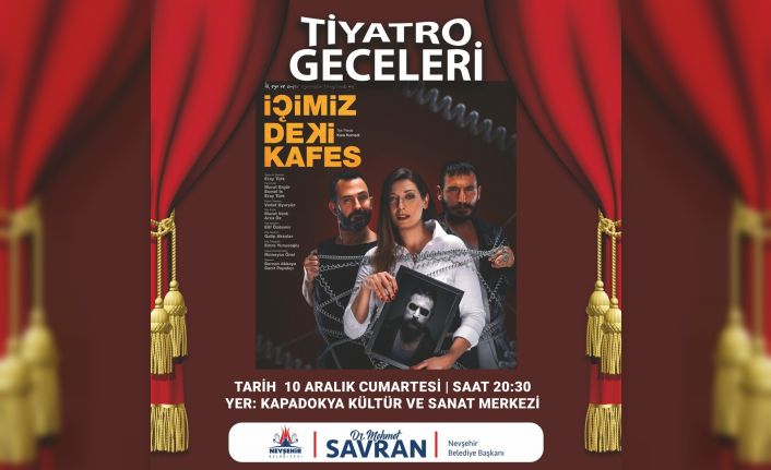 Nevşehir Belediyesi Kültür ve Sosyal İşler Müdürlüğü tarafından düzenlenen ve sanatseverlerce ilgiyle takip edilen kültür ve sanat etkinlikleri devam ediyor. Etkinlikler çerçevesinde bu kez Eray Türk’ün yazıp yönettiği ve Murat Ergür, Ecmel İs ve Eray Türk’ün rol aldıkları İçimizdeki Kafes adlı tiyatro oyunu 10 Aralık 2022 Cumartesi akşamı sahnelenecek. 15 yaş altındaki çocuklar ve biletsiz izleyicilerin salona alınmayacağı oyun için biletler Kapadokya Kültür ve Sanat Merkezi’nde satışa çıktı. Sanatseverler oyun için biletlerini 08.00-17.00 saatleri arasında 10 TL, öğrenciler ise 5 TL karşılığında buradan alabilecek.