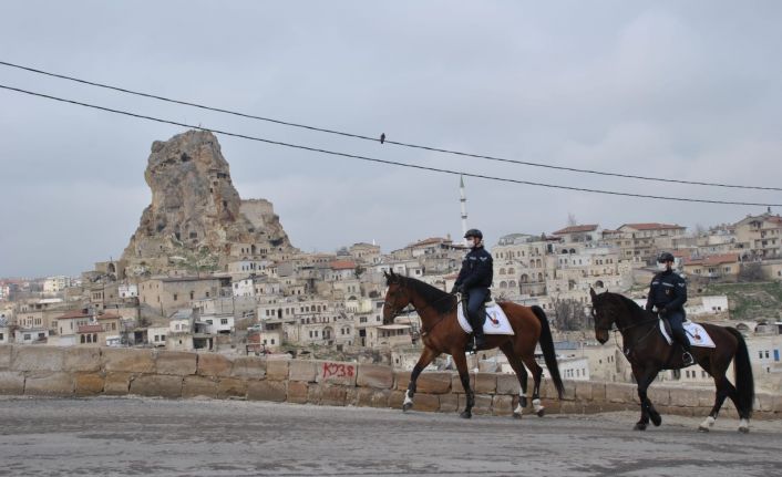 Arazilerin yapısı nedeniyle motorlu devriye araçlarının giremediği vadilerde, turistik mekanlarda yerli ve yabancı turistlere güvenlik hizmeti veren Atlı birlikler, günde ortalama 9 saat görev yapıyor. Atlı jandarma timleri, olası suçlara karşı caydırıcı nitelik de taşıyor.