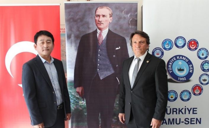Güney Kore Sendikalar Federasyonu Genel Başkanı Nam Sangyoun ve heyeti, Türkiye Kamu-Sen Nevşehir Şube Başkanı ve Türk Sağlık Sen Nevşehir Şube Başkanı Turgay Çetin’i ziyaret ederek sendika çalışmaları hakkında bilgi aldı. Yapmış oldukları araştırmalar sonucu Türkiye’de bağımsız ve tarafsız olduğu gerekçesi ile Türkiye Kamu Sen Konfederasyonu Nevşehir Şube başkanlığını ziyareti uygun gördüklerini ifade eden Nam Sangyoun, aynı zamanda da böyle tarafsız bir sendika ile de kardeş sendika olmayı çok arzu ediyoruz açıklamasında bulundu. Türkiye Kamu Sen Nevşehir Şube Başkanı ve Türk Sağlık Sen Nevşehir Şube Başkanı Turgay Çetin, Şube Başkan Yardımcıları Denizhan Aksoy ve Mahir Gölbaşı’nın hazır bulunduğu ziyarette, Çetin yapmış oldukları ziyaretten dolayı Güney Kore Sendikalar Federasyonu Genel Başkanı Nam Sangyoun‘a ve beraberindeki heyete teşekkür etti.