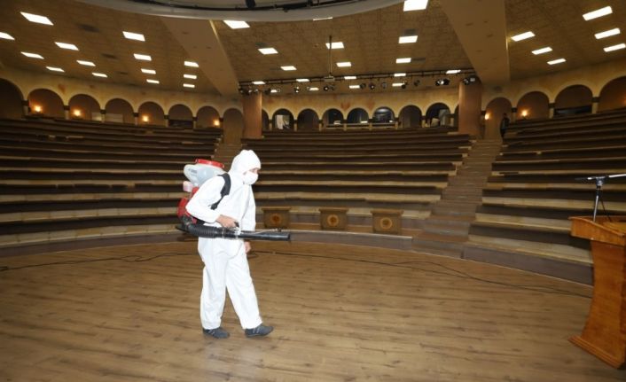 Temizlik İşleri Müdürlüğüne bağlı ekiplerce gerçekleştirilen çalışma ile birlikte toplantının yapılacağı salon, fuaye salonu, bekleme bölümleri titizlikle temizlenerek dezenfekte edildi.