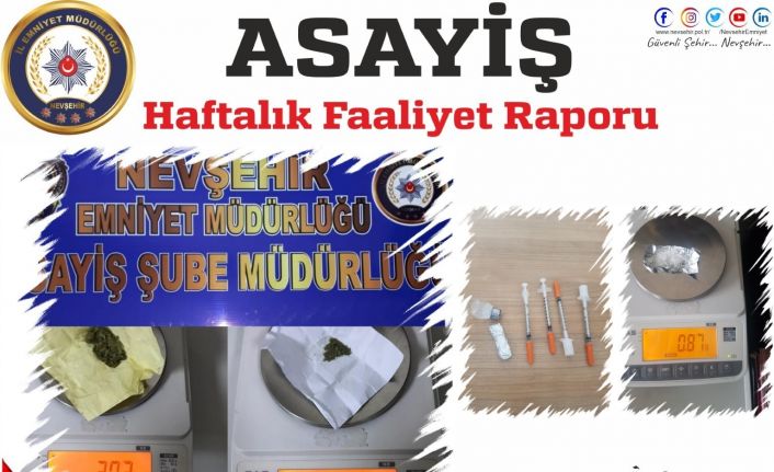 Asayiş Şube Müdürlüğü resmi ekiplerinin şüpheli şahıslar ve araçlar üzerinde yapmış olduğu çalışmalarda ise 11 şüpheli şahıs kontrol edildi. Yapılan kontrollerde 3,68 gr metamfetamin, 2,81 gr esrar, 1 adet kurusıkı tabanca, 8 adet fişek, 1 adet av tüfeği, uyuşturucu madde içmekte kullanılan PUYP ve 4 adet enjektör ele geçirildi.