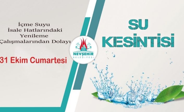 Nevşehir Belediyesi, içme suyu ana isale hatlarında yapılacak olan yenileme çalışmalarından dolayı 31 Ekim 2020 Cumartesi günü şehir merkezinin tamamına su verilemeyeceğini belirterek, vatandaşların mağdur olmaması için gerekli tedbirleri alması uyarısında bulundu.