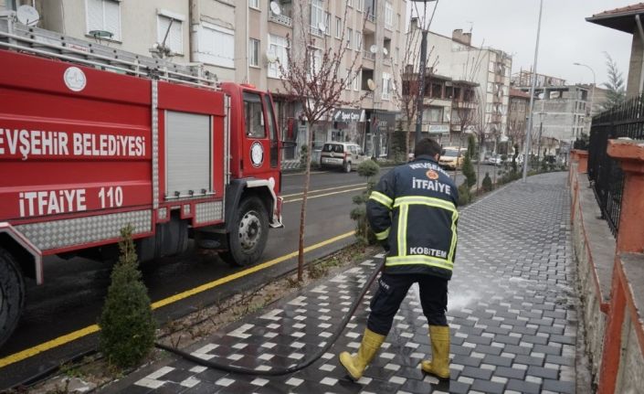 Nevşehir Belediyesi ekipleri korona virüs önlemleri kapsamında cadde ve sokakları dezenfekte ediyor.
