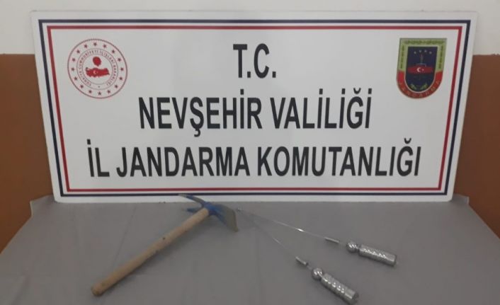 Alınan bilgilere göre, İl Jandarma Komutanlığına bağlı ekipleri Hacıbektaş ilçesinde 1.derece arkeolojik sit alanında kaçak kazı yaparak define arayan T.Ö.’yü suçüstü yakalayarak gözaltına alırken kaçak kazıda kullanılan 1 adet kazma, 2 adet define aramada kullanılan demir çubuk ele geçirildi.