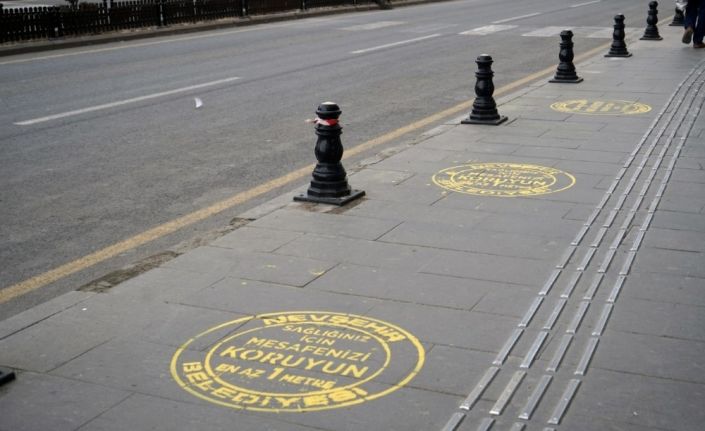 Nevşehir’de kaldırım ve banka önlerinde sosyal mesafe uyarısı