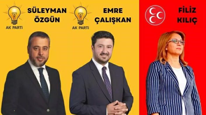 "Süleyman Özgün (AK Parti), Emre Çalışkan (AK Parti), Filiz Kılıç (MHP)."