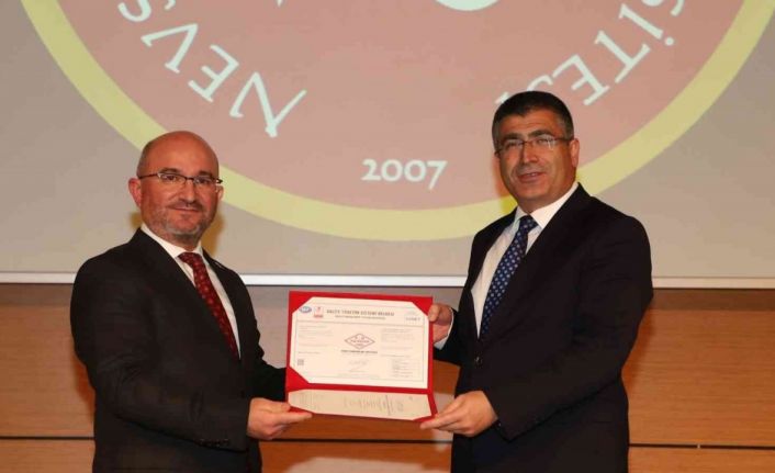 Aktekin, “Öğrencilerimizin, akademik ve idari personelimiz ile birlikte tüm dış paydaşların sağlığının korunması için gerekli adımları atıyoruz, atmaya da devam edeceğiz. Nevşehir Hacı Bektaş Veli Üniversitesi olarak bizim de temel gayemiz, Yükseköğretim Kurulu (YÖK) ve Yükseköğretim Kalite Kurulu’nun (YÖKAK) belirlediği hedefler doğrultusunda NEVÜ’nün ortaya koymuş olduğu hedef, kalite ve standartlara yönelik olarak küresel salgın tedbirleri devam ettiği sürece, belgemizi yenileyerek sunulan hizmet kalitemizin sürdürülebilirliğini arttırmaktır. Ben bu vesileyle belgenin üniversitemize kazandırılmasında emeği geçen tüm akademik ve idari personelimiz ile birlikte TSE yetkililerine bir kez daha şahsım ve üniversitem adına teşekkür ediyorum” diye konuştu.