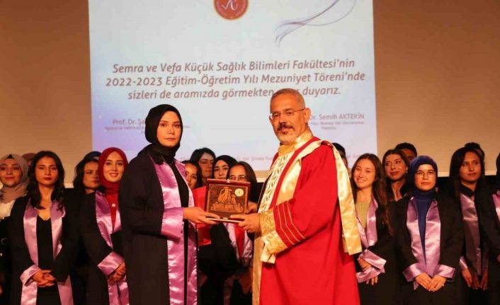2022-2023 Eğitim-Öğretim Yılı’nda Semra ve Vefa Küçük Sağlık Bilimleri Fakültesini birincilikle tamamlayan öğrencilerden Mahmut Yılmaz, mezun olan tüm arkadaşları adına haklı heyecan, gurur ve mutluluğunu mezuniyet yaş kütüğüne çaktığı plaka ile perçinledi.