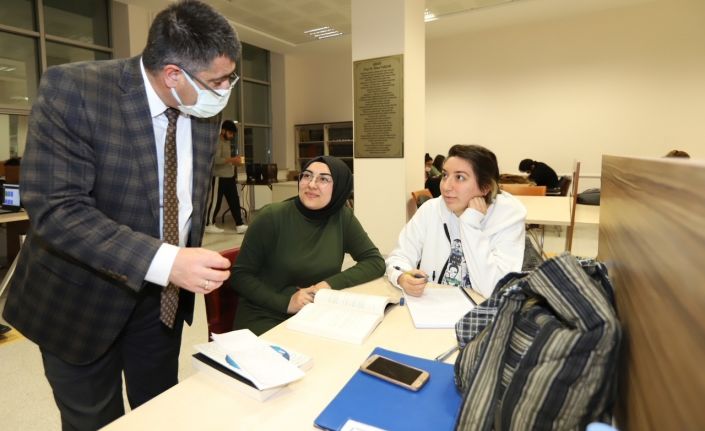 NEVÜ Rektörü Prof. Dr. Semih Aktekin üniversitenin Damat İbrahim Paşa Yerleşkesi içerisinde bulunan Hoca Ahmed Yesevi Kütüphanesi’nde güz dönemi final sınavlarına hazırlanan NEVÜ’lü öğrencilerle bir araya geldi. Sınavlara hazırlanan öğrencilerle bir süre sohbet ederek kendilerine girecekleri sınavlarında başarılar dileyen Rektör Aktekin, gerek üniversite olarak gerekse yerel yönetimler ile sivil toplum kuruluşları tarafından sınav boyunca öğrencilere sunulan çeşitli ikramların devam edeceğini söyledi. Aktekin; “Ülkemizin dört bir tarafından üniversitemize ve şehrimize okumak için gelen ve ailelerinin bizlere birer emaneti olan tüm öğrencilerimizin en iyi şartlarda eğitimlerini almaları ile birlikte kendilerine moral ve motivasyon olacak, ders dışında da gelişimlerine de katkı sağlayacak çeşitli etkinliklere büyük önem veriyoruz” dedi. Öğrencilerin sıcak ve rahat bir ortamda sınavlara hazırlanmaları için de üniversitenin kütüphane çalışma saatlerinde değişikliğe giderek içerisinde sınav haftası boyunca öğrencilere çeşitli ikramlarda bulunulduğunu belirten Rektör Aktekin; “Öğrenci odaklı yönetimi benimseyen bir üniversite olarak öğrencilerimizin sınavlarına en iyi şekilde hazırlanmaları için elimizden gelen gayreti gösteriyoruz. Özellikle üniversitemiz yerleşkesi içerisinde bulunan merkez kütüphanemizi sınav dönemi boyunca 08:30 - 23:00 saatleri arasında sürekli açık tutarak, öğrencilerimizin rahat ve sıcak bir ortamda ders çalışmalarına yardımcı oluyoruz. Bunun yanı sıra üniversite olarak kütüphanemizin 7/24 Okuma Salonu’nda öğrencilerimize her akşam 20:00 - 21:00 saatleri arasında sürekli sıcak çorba ikramımız bulunmakta. Ayrıca Nevşehir Belediyemizin de kütüphanemizde sınava hazırlanan öğrencilerimize sınav haftası boyunca çeşitli ikramları olurken, hafta sonları ise Türk Kızılayı Nevşehir Şubesi tarafından 20:00 - 23:00 saatleri arasında sıcak çorba ikramları bulunuyor. Bu vesileyle öğrencilerimizin sınavlarına en iyi şekilde hazırlanarak başarılı olmaları için fedakârlıkta bulunan başta üniversitemizin tüm kütüphane çalışanları olmak üzere, Nevşehir Belediye Başkanımız Dr. Mehmet Savran ve ekibi ile Türk Kızılayı Nevşehir Şubesi Başkanı Ercan Civelek ve Kızılay gönüllüsü gençlerimize şahsım ve üniversitem adına bir kez daha teşekkür ediyorum” diye konuştu.