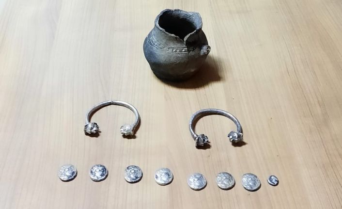 Edinilen bilgilere göre, KOM Şube Müdürlüğü ekipleri tarafından yol kontrol ve denetleme noktasında şüpheli araç içerisinde yapılan aramada tarihi eser niteliğinde 8 adet madeni para, 2 adet gümüş renkli metal bilezik, 1 adet 8 cm uzunluğunda toprak küp ele geçirildi.