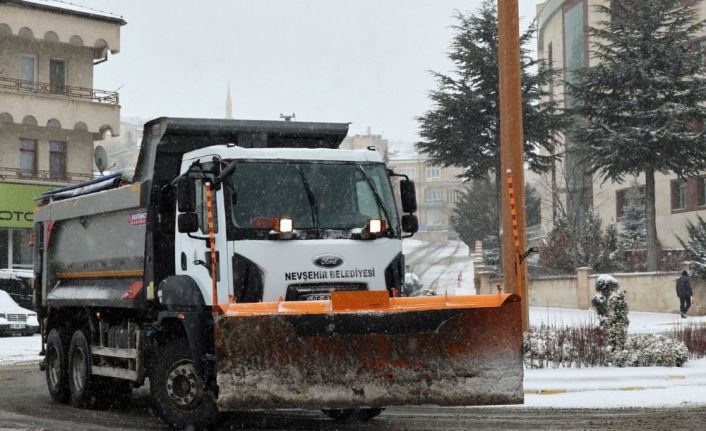 Nevşehir’de gece boyunca etkili olan kar yağışı dolayısıyla belediye ekipleri harekete geçti.