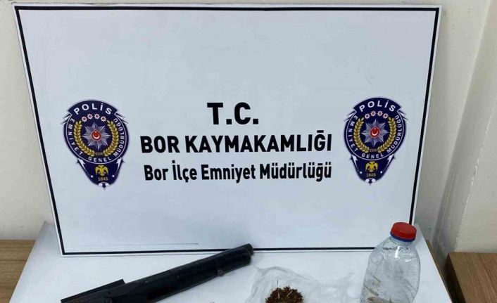 Bor Emniyet Müdürlüğü Narkotik Suçlarla Mücadele Şube Müdürlüğü ekiplerince bir iş yerine yapılan operasyonlarda 2 şüpheli yakalandı. İfadeleri alındıktan sonra 1 şüpheli serbest bırakılırken bir şüpheli ise çıkarıldığı mahkemece tutuklanarak cezaevine gönderildi.