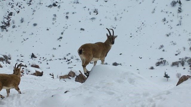 Doğa Koruma ve Milli Parklar Müdürlüğü ekipleri, Niğde’de bulunan Demirkazık Yaban Hayatı Geliştirme Sahası’nda kış şartlarının ağırlaşmasıyla birlikte yaban hayvanlarına yönelik yemleme çalışmalarını sürdürüyor.