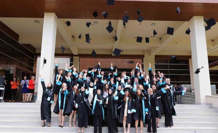 Hemşirelik ve Ebelik Bölümlerinin Ant İçme Töreni, keplerin atılması ile son buldu.