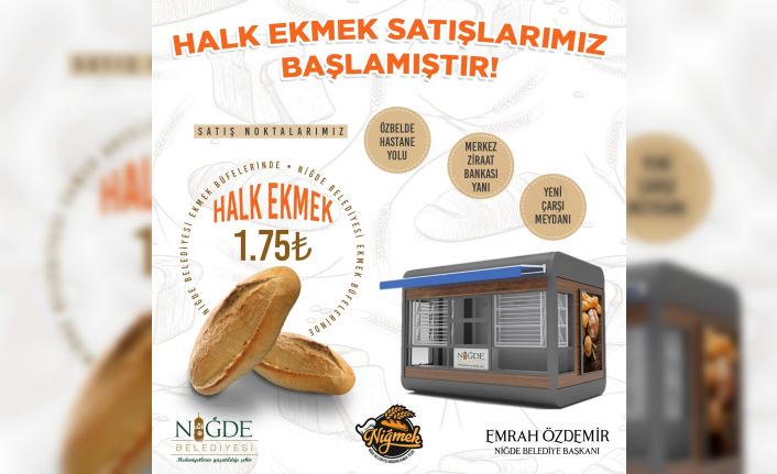 Niğde Belediyesi Modern Ekmek Tesisinde (NİĞMEK) üretilen ekmekler, ilk olarak üç büfede satılıyor. Şu an itibariyle Yeni Çarşı Meydanında, Ziraat Bankası Yanında ve Özbelde Hastane Yolunda faaliyete başladı. Bir ay içerisinde kentin diğer yerlerindeki büfelerin de hizmete açılacağı, önümüzdeki günlerde ise ekmek çeşitlerinin artırılarak glütensiz ürünlerin de satılmaya başlanacağı belirtildi. Ekmek fiyatının ise 1,75 TL olarak belirlendiği büfeler aynı zamanda engelli vatandaşlar için istihdam kaynağı olacak.