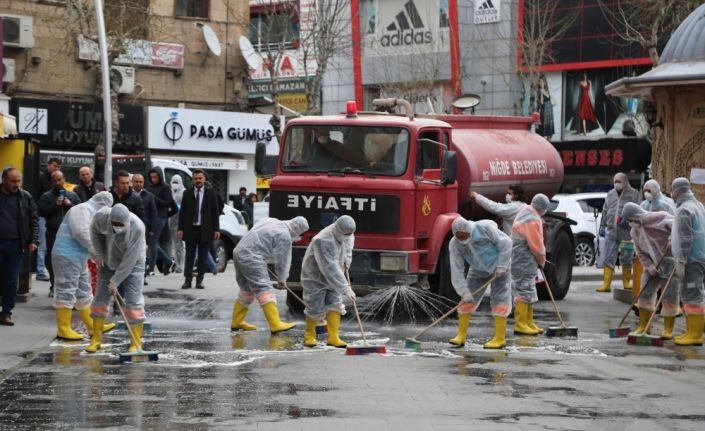 Niğde Belediyesi Temizlik İşleri Müdürlüğü ekipleri, korona virüs tedbirleri kapsamında yeni çarşı, şadırvan parkı ve çevresi olmak üzere halkın yoğun olduğu alanları temizledi. Ekipler ayrıca, yıkama ve süpürge araçlarının su tanklarına dezenfektan ve çeşitli temizlik kimyasalları da koyarak korona virüse karşı önlemlerini sıklaştırdı.