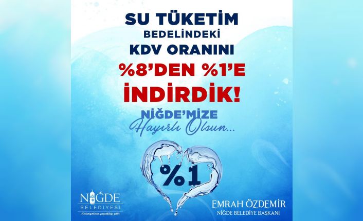 Niğde Belediyesi su faturalarındaki yüzde 8’lik KDV oranını yüzde 1’e indirdi.