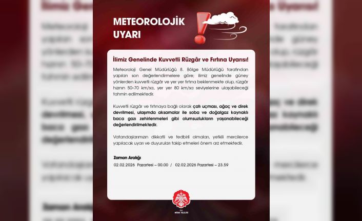 Yapılan açıklamaya göre, Niğde genelinde rüzgarın güney yönlerden kuvvetli eseceği, rüzgar hızının 50-70 kilometre/saat, yer yer ise 80 kilometre/saat seviyelerine ulaşabileceği tahmin ediliyor. 2 Şubat 2026 Pazartesi günü saat 00.00’dan başlayan kuvvetli rüzgar ve fırtınanın saat 23.59’a kadar etkili olması bekleniyor. Valilik tarafından yapılan uyarıda, olumsuz hava şartlarına bağlı olarak çatı uçması, ağaç ve direk devrilmesi, ulaşımda aksamalar ile soba ve doğalgaz kaynaklı baca gazı zehirlenmeleri gibi risklerin oluşabileceğine dikkat çekilerek vatandaşların dikkatli ve tedbirli olmaları, uyarı ve duyuruları yakından takip etmelerinin büyük önem taşıdığı vurgulandı.