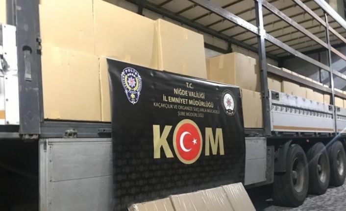 Niğde’de polis ekipleri tarafından yapılan çalışmalarda, tır dorsesinde 4 milyon 950 bin makaron ele geçirildi.