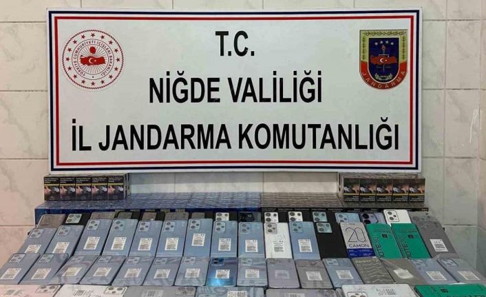 Niğde İl Jandarma Komutanlığı ekipleri tarafından Pınarcık mevkide yapılan denetimde, bir araçta piyasa değeri 1 milyon 200 bin TL olan 78 adet kaçak cep telefonu ile 399 paket kaçak sigara yakalandı.