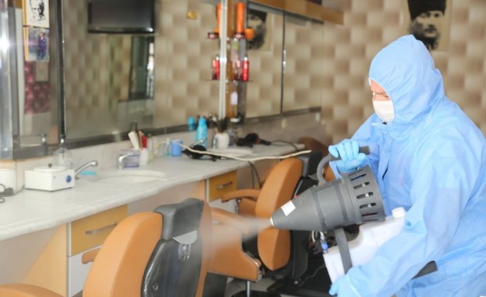 Korona virüs salgınının ülkemizde önlenmesi için alınan tedbirler kapsamında 22 Mart 2020 tarihinde kapanan berber ve kuaför salonları 11 Mayıs 2020 Pazartesi gününden itibaren sağlık ve hijyen kurallarına uygun bir şekilde hizmet verecek. Belediye Başkanı Emrah Özdemir’in talimatları doğrultusunda harekete geçen Veteriner İşleri Müdürlüğüne bağlı ekipler, kentte bulunan berber ve kuaför salonlarında dezenfekte çalışması başlattı. 3 ayrı ekip, korona virüse karşı etkili kimyasalla dükkanları baştan aşağı dezenfekte ediyor.