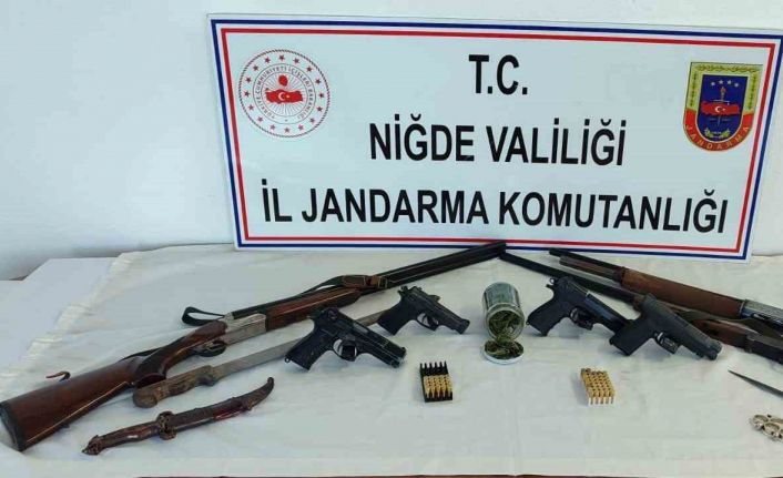 Edinilen bilgiye göre, Niğde Cumhuriyet Başsavcılığı koordinesinde İl Jandarma Komutanlığı ekipleri tarafından uyuşturucu ve ruhsatsız silah ile mücadele kapsamında operasyon düzenlendi. Düzenlenen operasyonda uyuşturucu madde ile 4 adet ruhsatsız tabanca, 3 adet ruhsatsız av tüfeği,1 adet çift taraflı bıçak, 1 adet muşta,1 adet döner bıçağı, 57 adet 9 mm çapında tabanca fişeği, 15 adet 22 cal. av tüfeği fişeği ele geçirildi. Operasyonda 3 şüpheli şahıs hakkında adli işlemler başlatıldı.