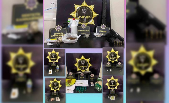 Ekipler tarafından yapılan operasyonda çeşitli miktarlarda uyuşturucu maddesi ile birlikte 5 adet uyuşturucu kullanım aparatı, 2 adet tüfek ve tüfeğe ait 39 adet fişek, 1 adet tabanca ve tabancaya ait 1 şarjör ile 7 adet mermi ele geçirildi.