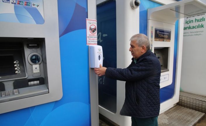 Altınordu Belediyesi korona virüs (Kovid 19) salgınına karşı alınan tedbirler kapsamında şehirde bulunan banka ATM’lerine ve toplu yaşam alanlarına dezenfektan yerleştirdi.