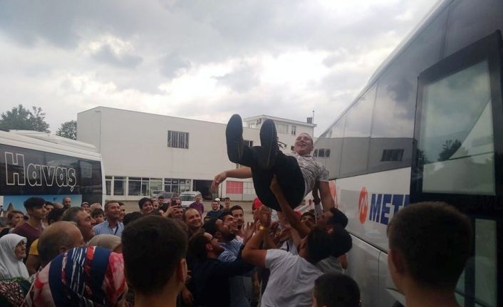 Askere sloganlarla gönderilen Mehmetçik adayları, “En büyük asker bizim asker” sloganları atarken, askerler İstiklal Marşı eşliğinde vatani görevi yapacakları illere uğurlandılar.