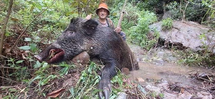Ordu’nun Altınordu ilçesinde yaklaşık 250 kiloluk dev domuz domdom kurşunu ile avlandı.