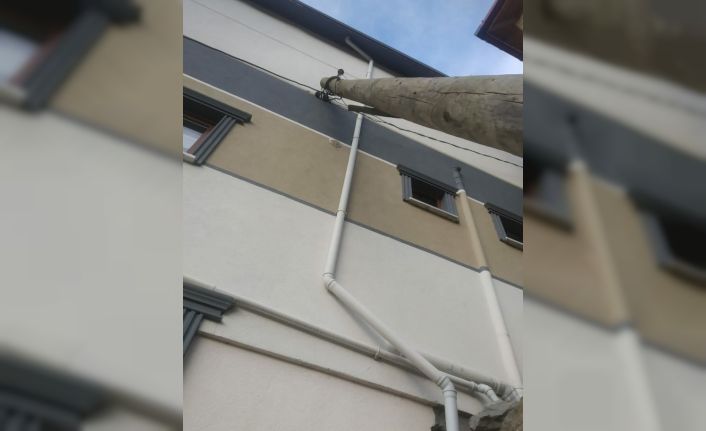 Ordu’nun Kumru ilçesinde rüzgarın etkisiyle yan yatarak, bir eve temas eden elektrik direği, ekipler tarafından sağlamlaştırıldı.