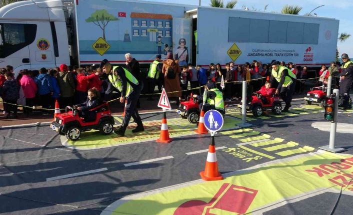 Jandarmanın mobil trafik eğitimi ile öğrenci ve yetişkinler bilinçlendirildi