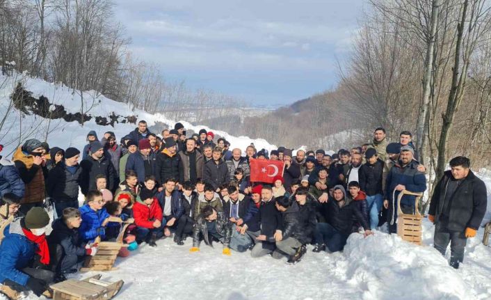 Ordu’nun Kumru ilçesindeki esnafların öncülüğünde vatandaşlar, kendi imkanları ile oluşturdukları 500 metre uzunluğundaki kayma alanında kar yağışının keyfini çıkarttı.