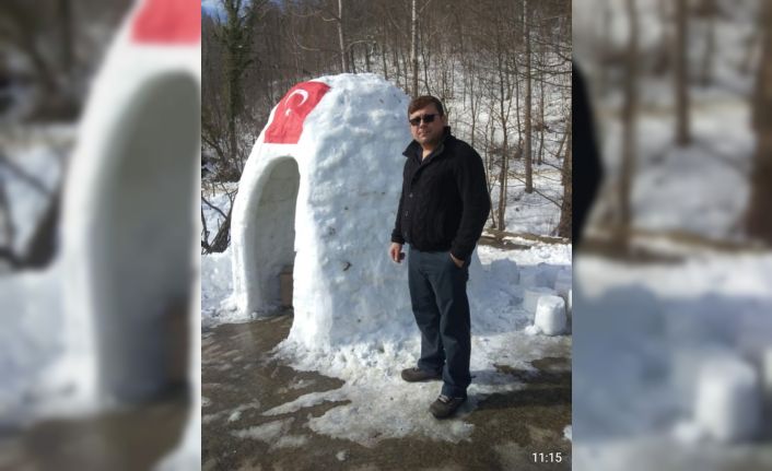 Ordu’nun Kumru ilçesinde yaşayan bir kişi, köyüne yapacağı taş fırının provasını kar kütleleriyle inşa ederek, provasını yaptı.