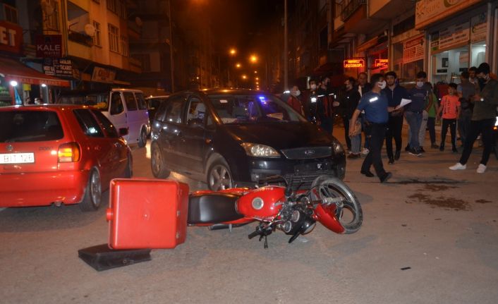 Ordu’nun Ünye ilçesinde yemek firmasında çalıştığı öğrenilen motosiklet kuryesi otomobil ilçe çarpışması sonucu yaralandı.
